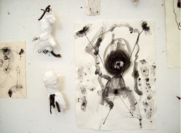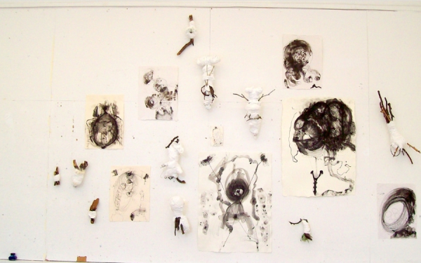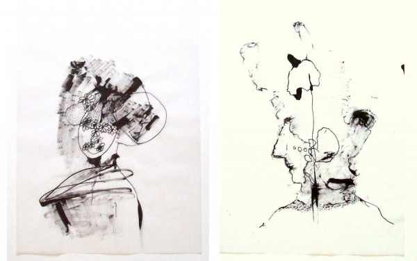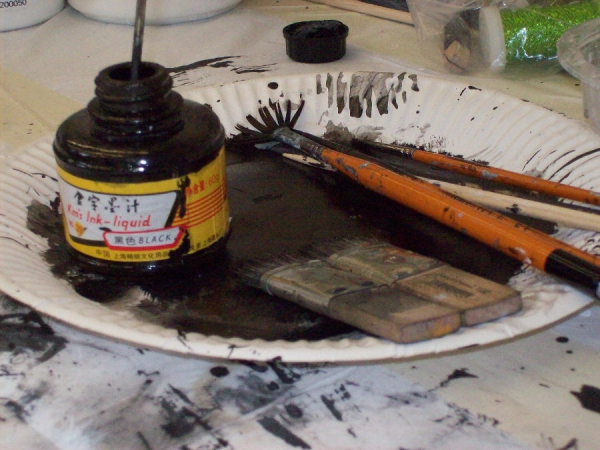 ...Schwarz auf Weiß ? Weiß hinter Schwarz ? oder Schwarz mit Weiß ?...ein Pinsel... getaucht in schwarze Tinte... zieht endlos Schleifen...Linien..Punkte..Spritzer..Flecken......wo?... auf allerlei großen und kleinen Papieren.....mit und ohne Wert ... ein wirkliches Ende ist zu meiner großen Freude nie in Sicht ...